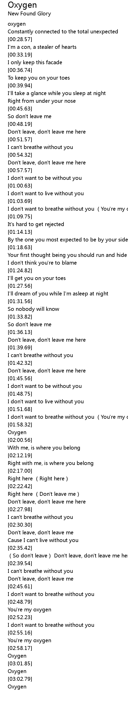 | [02:56.98] | You're my oxygen |