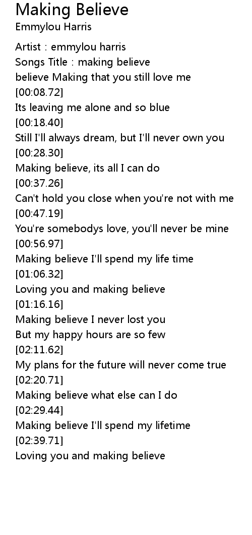 | [02:31.43] | Making believe I'll spend my lifetime |