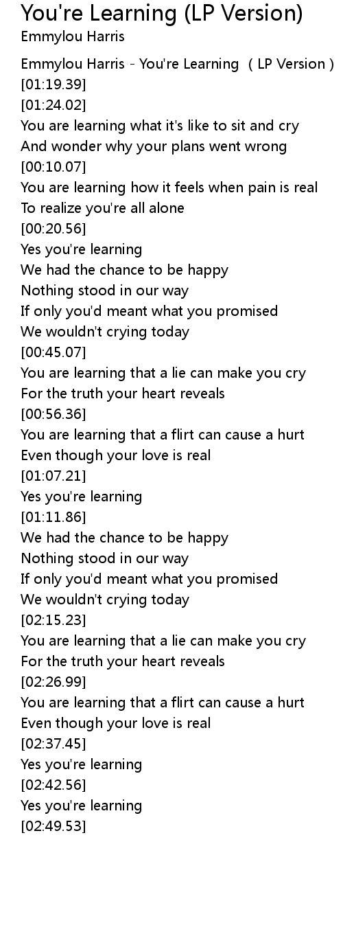 | [01:15.03] | Emmylou Harris You' re Learning LP Version |