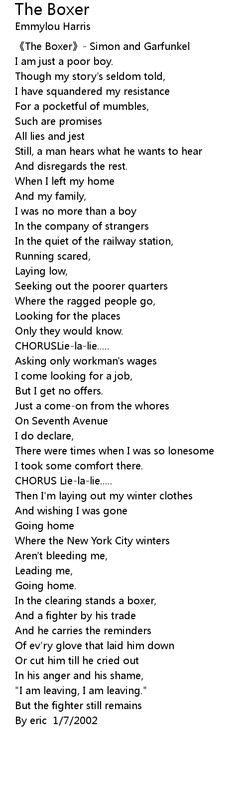 | 《The Boxer》- Simon and Garfunkel | |