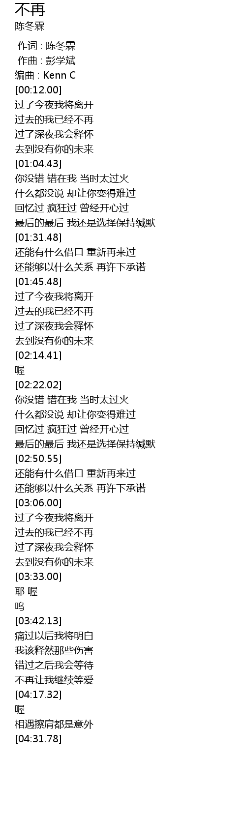 [00:38.54] guò le jīn yè wǒ jiāng lí kāi