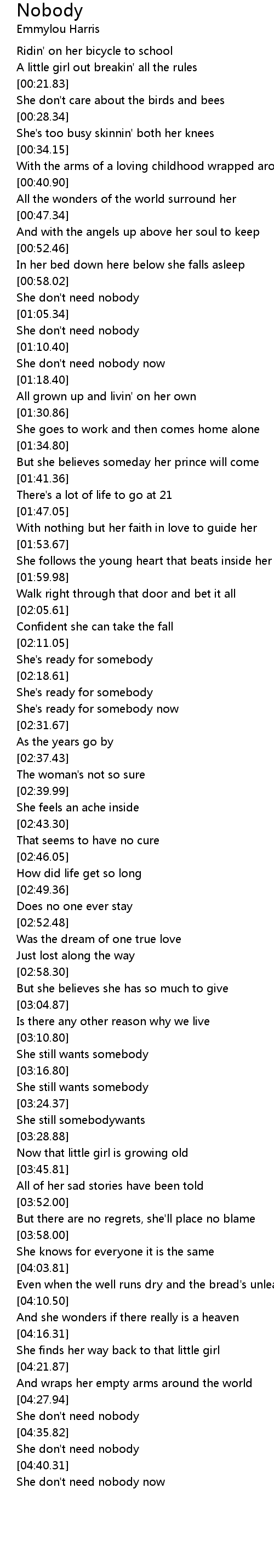 [04:31.31] She don't need nobody