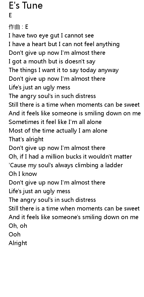 | Don' t give up now I' m almost there | |