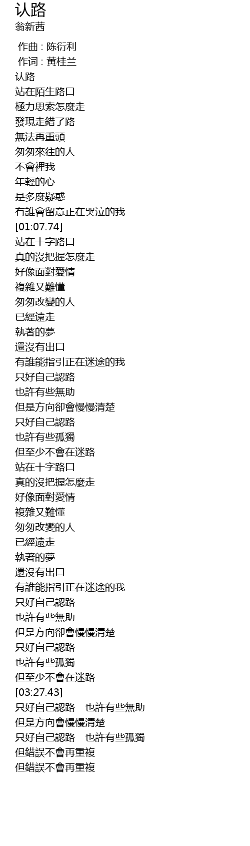 | [03:28.68] | 只好自己認路 也許有些無助 |