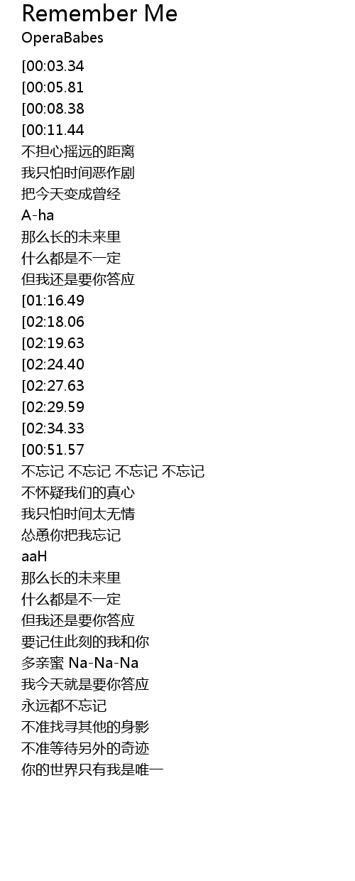 | [02:36.72][00:51.57] | 永远都不忘记 |