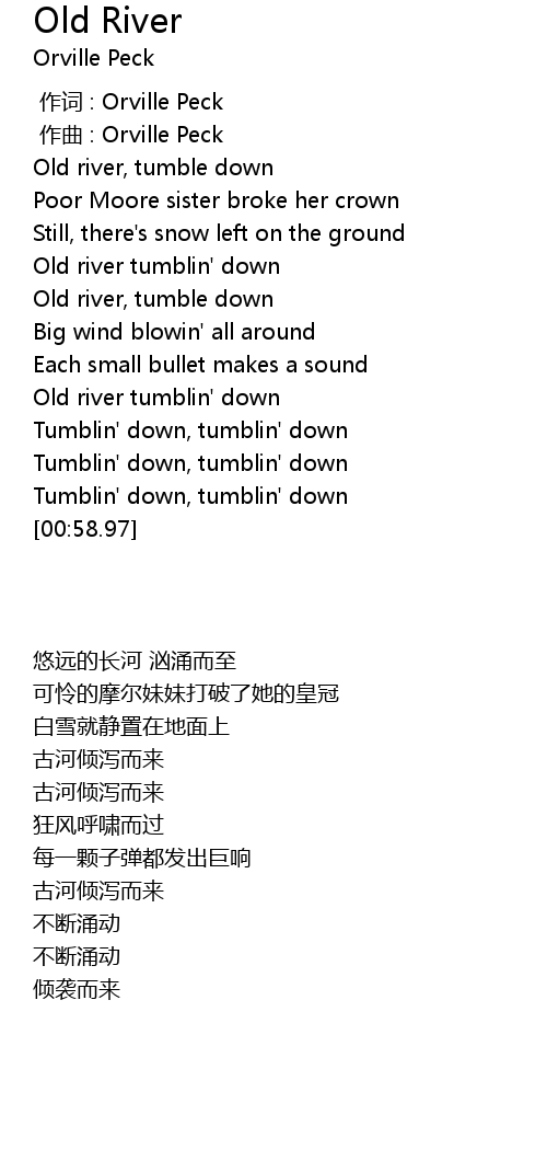 | [00:54.46] | Tumblin' down, tumblin' down |