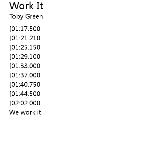 | [00:11.600][01:29.100] | We work it, we work it |