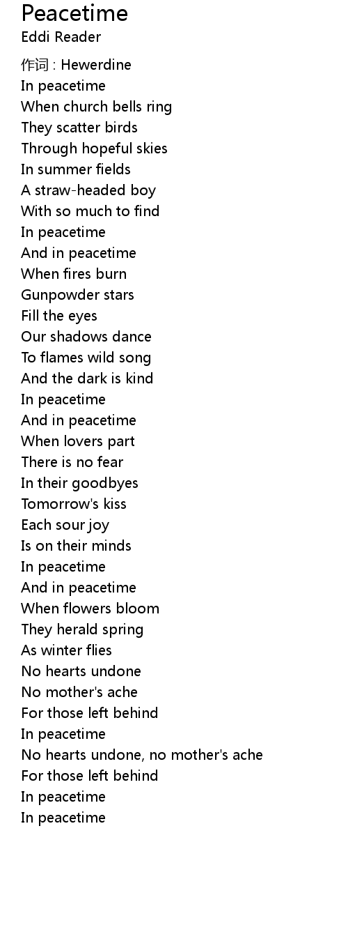 | 歌曲 | Peacetime |
