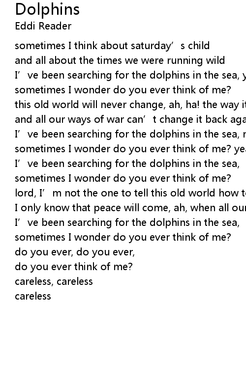 | I’ve been searching for the dolphins in the sea, yeah | |