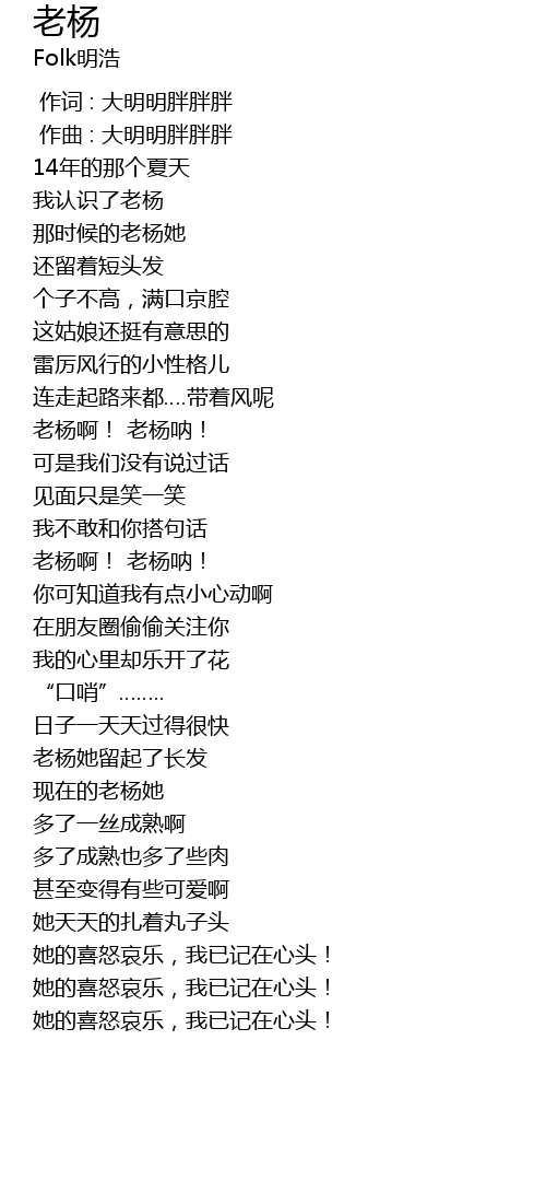 | [01:05.251] | 老杨啊! 老杨呐! |