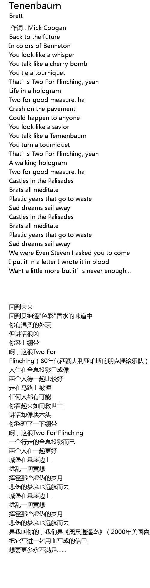 | 歌曲 | Tenenbaum |
