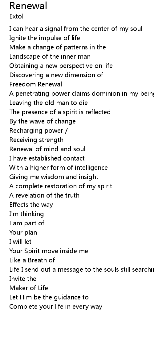 Renewal of mind and soul |