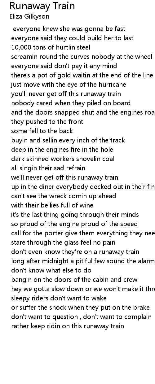 we'll never get off this runaway train |
