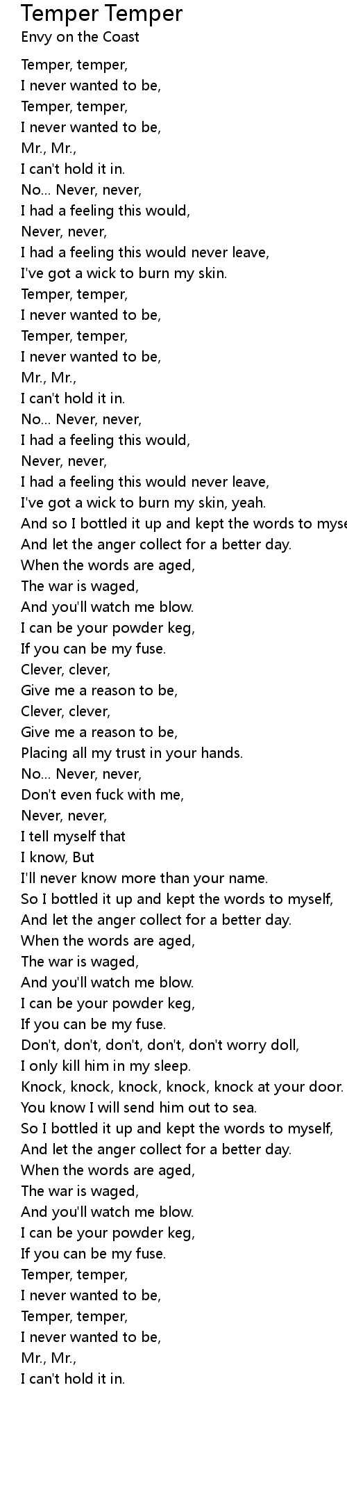 Temper, temper, |