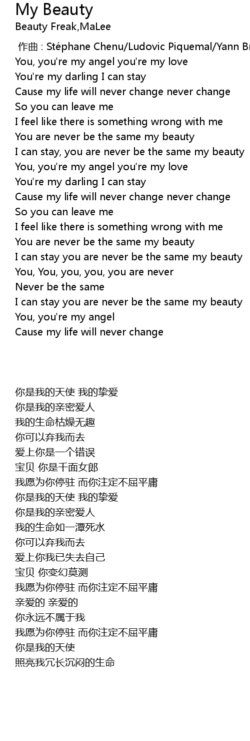 | [01:10.786] | I can stay, you are never be the same my beauty |