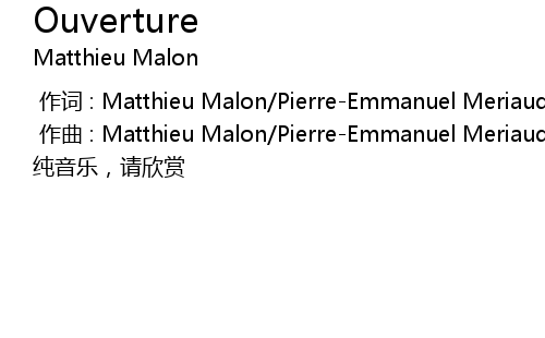 | [00:01.000] | zuo qu : Matthieu Malon PierreEmmanuel Meriaud |