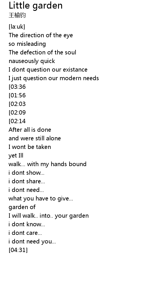 | [01:02][03:36][04:00] | I will walk... with my hands bound |