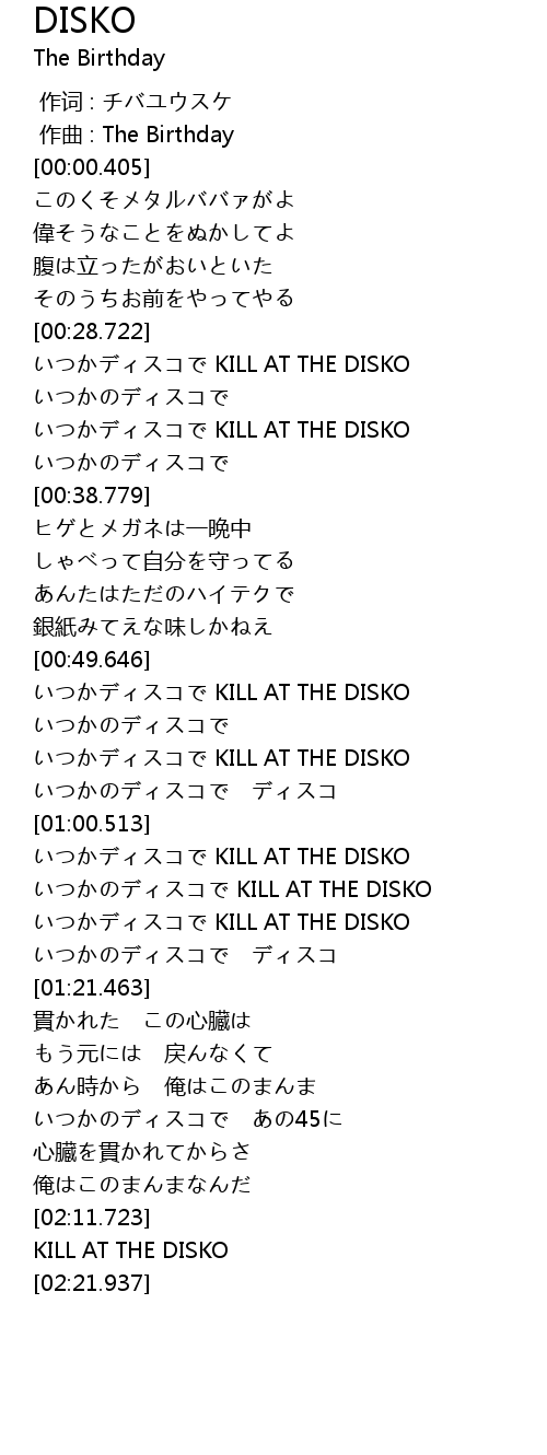 | [00:55.001] | いつかディスコで KILL AT THE DISKO |