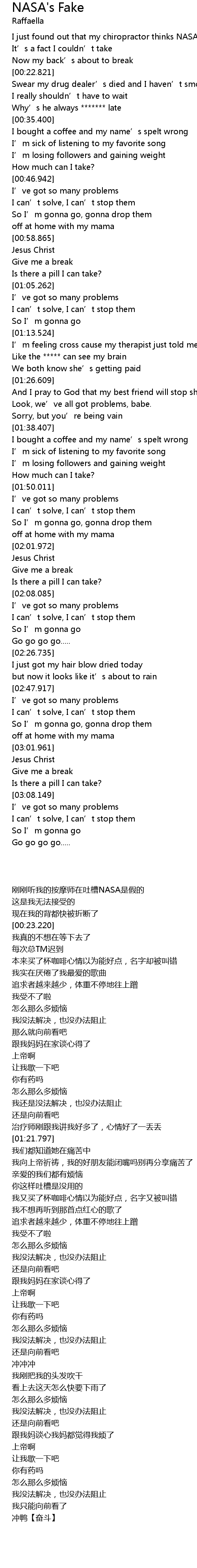 | [00:12.036] | I just found out that my chiropractor thinks NASA' s fake |