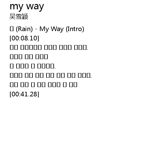 | [00:01.12] | 비 (Rain) - My Way (Intro) |