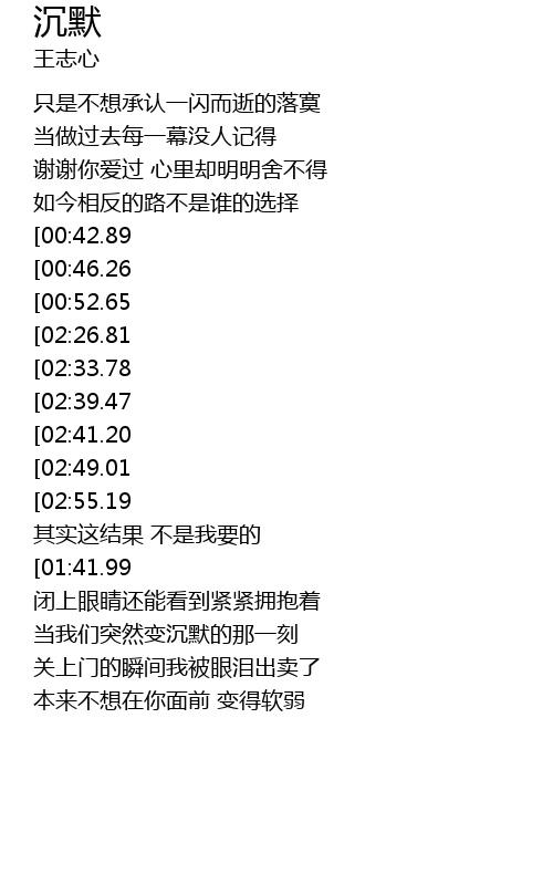 | [02:56.11][02:26.81][00:59.94] | 努力说不爱了 不想承认有多深刻 |
