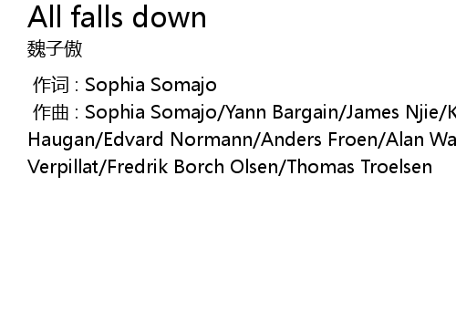 | [00:00.000] | 作曲 : Sophia Somajo/Yann Bargain/James Njie/Kristoffer Haugan/Edvard Normann/Anders Froen/Alan Walker/Gunnar Greve/Victor Verpillat/Fredrik Borch Olsen/Thomas Troelsen |