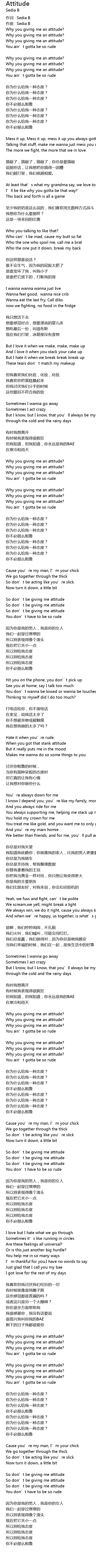 | Why you giving me an attitude? | |