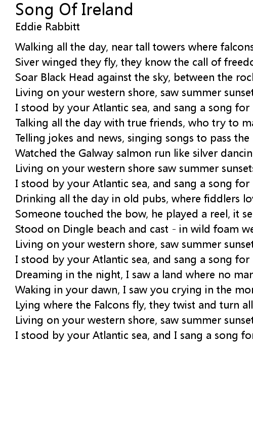 I stood by your Atlantic sea, and I sang a song for Ireland |