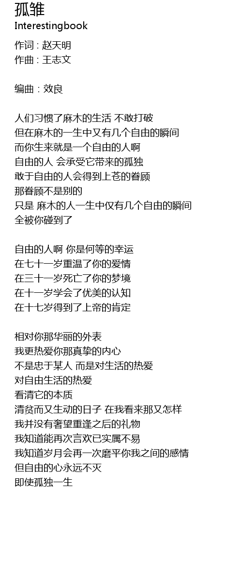 | 自由的人 会承受它带来的孤独 | |