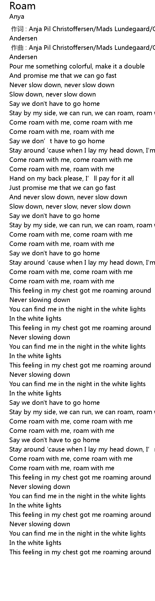 | [02:13.05] | Stay by my side, we can run, we can roam, roam with me |