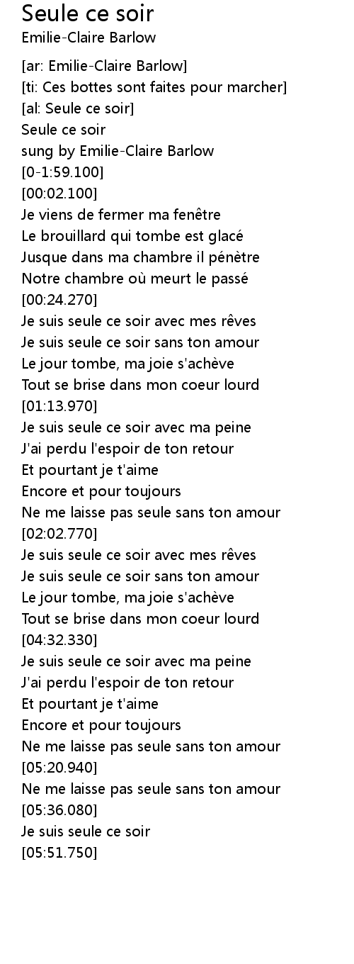 | [03:58.840] | Je suis seule ce soir sans ton amour |