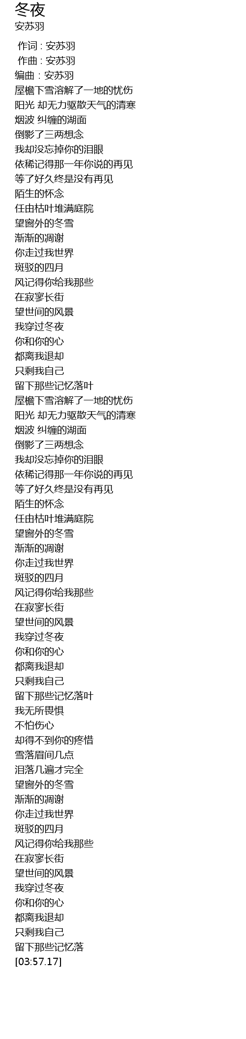 | [03:42.99] | wǒ chuān guò dōng yè |