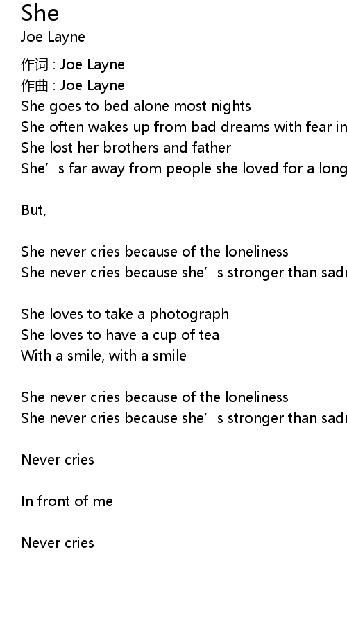 | She never cries because of the loneliness | |