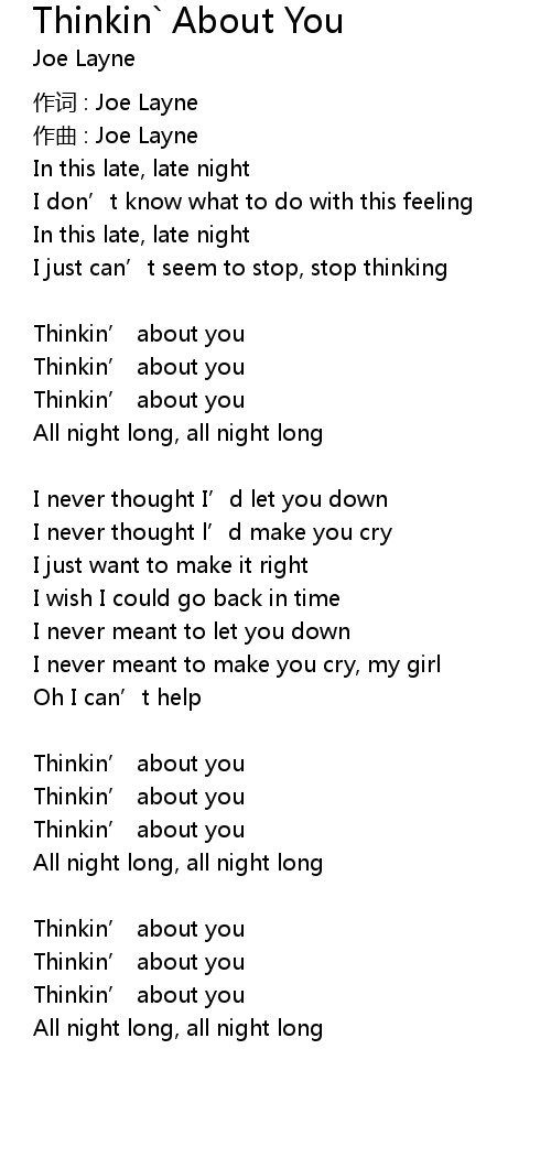 | 歌曲 | Thinkin` About You |