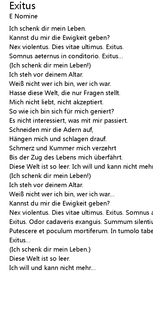 | Diese Welt ist so leer. Ich will und kann nicht mehr. | |