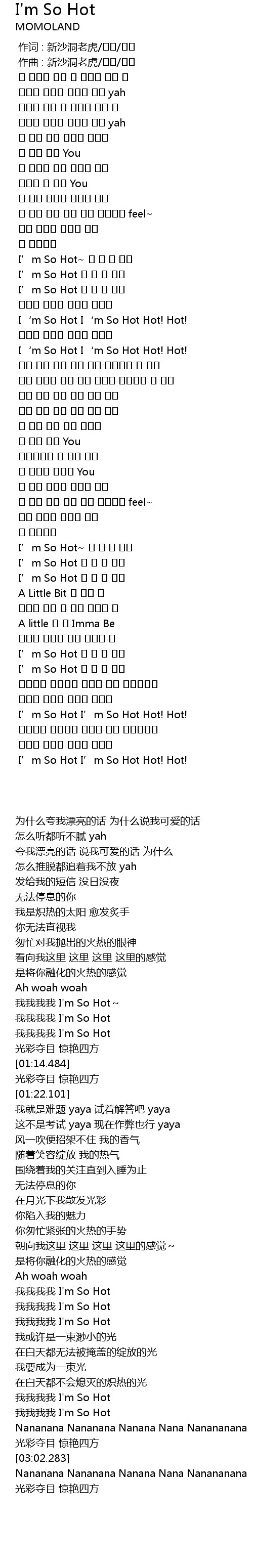 | [03:02.283] | I' m So Hot I' m So Hot Hot! Hot! |