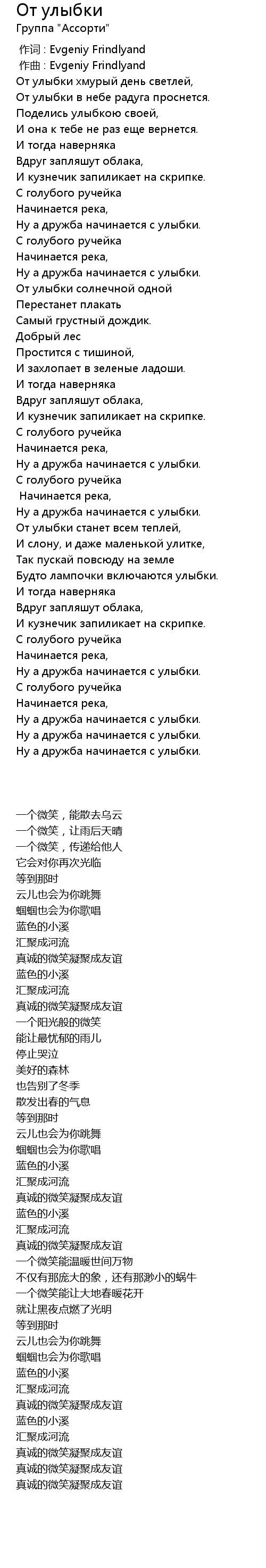 | 歌曲 | От улыбки |