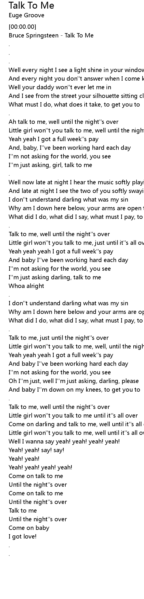 [00:57.74] Little girl won''t you talk to me, well until the night''s over