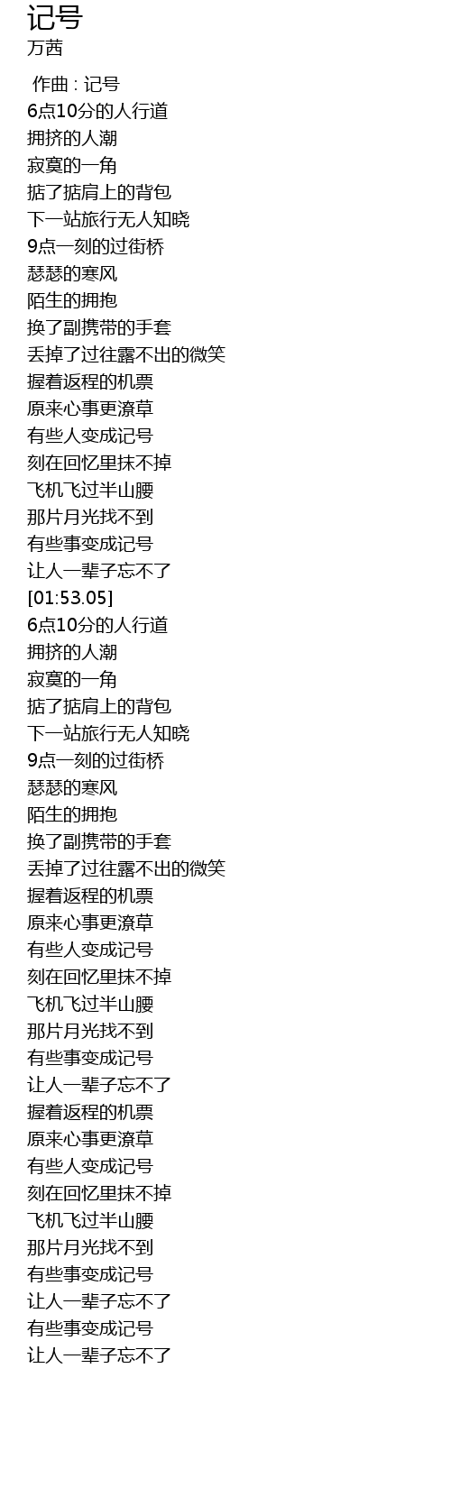 | [01:39.98] | yǒu xiē shì biàn chéng jì hào |