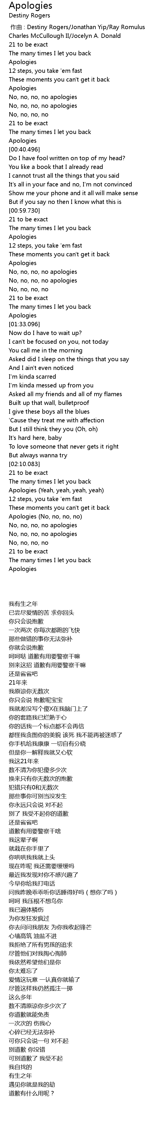 | [02:23.546] | Apologies (No, no, no, no) |