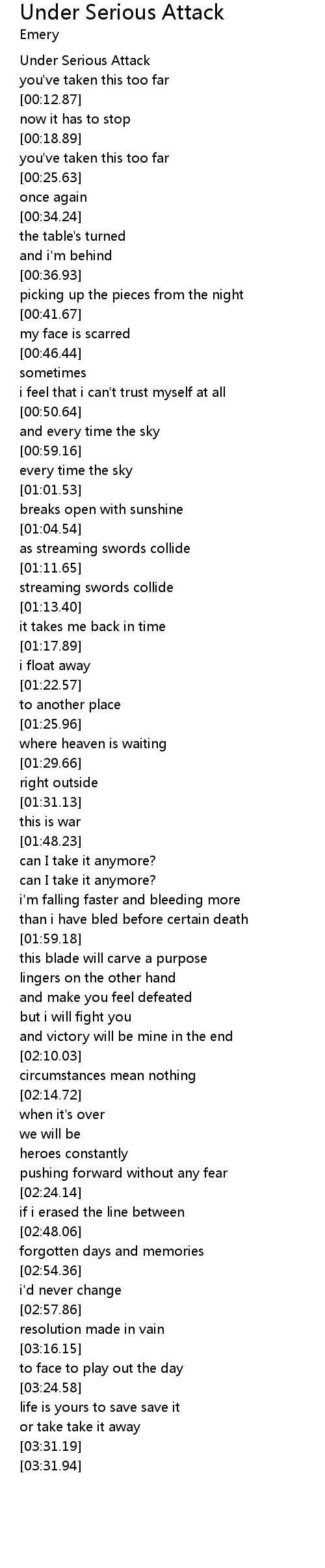 | [00:00.30] | Under Serious Attack |
