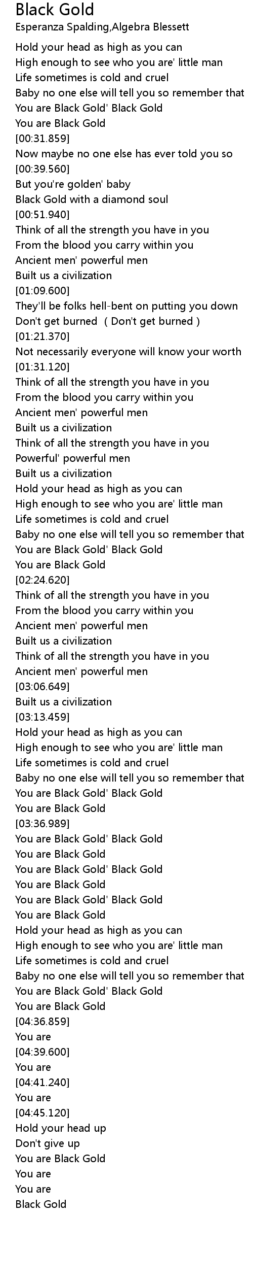 | [04:24.400] | You are Black Gold' Black Gold |
