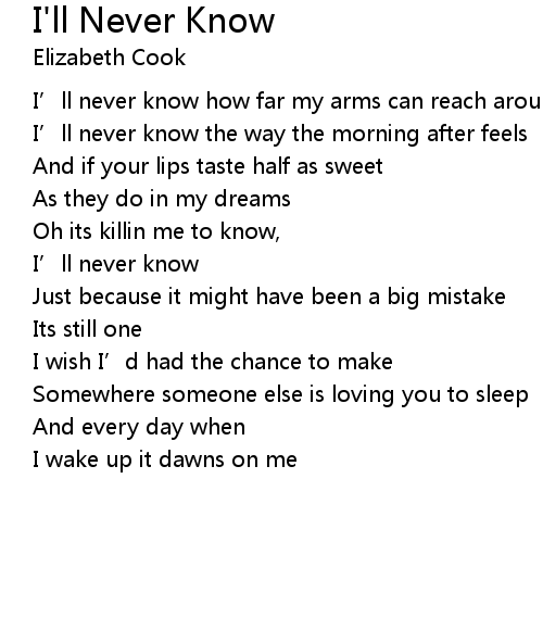 | I' ll never know | |