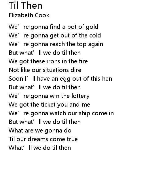 | But what' ll we do til then | |