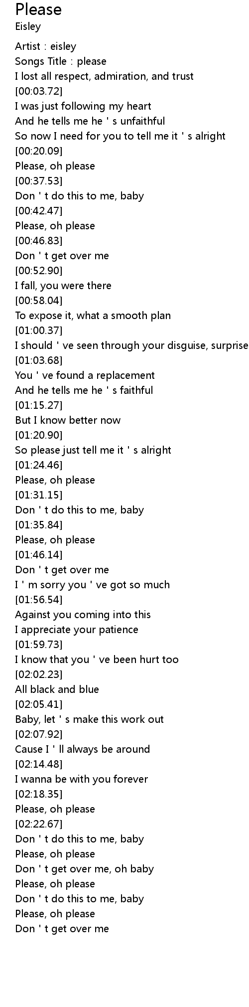 | [00:01.23] | Songs Title: please |
