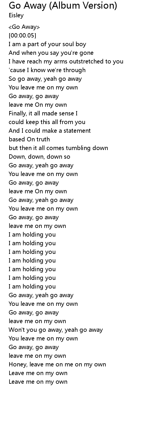 | [00:01.43] | Go away, yeah go away |