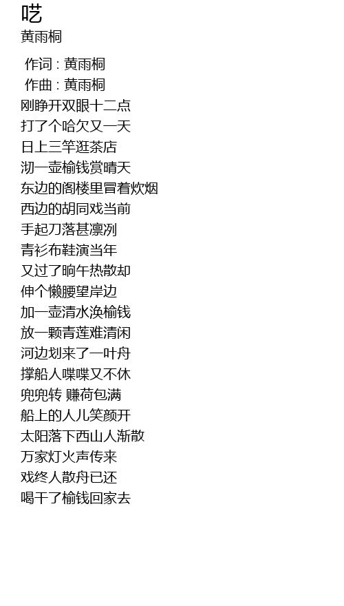 | [00:36.686] | 沏一壶榆钱赏晴天 |