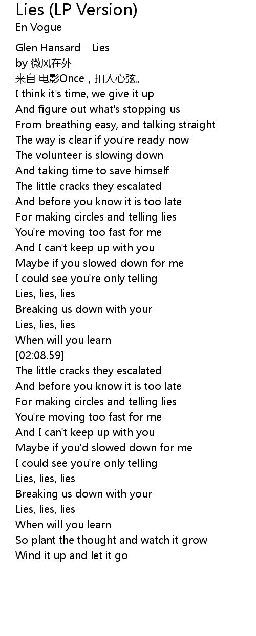 | [01:53.70] | Lies, lies, lies |