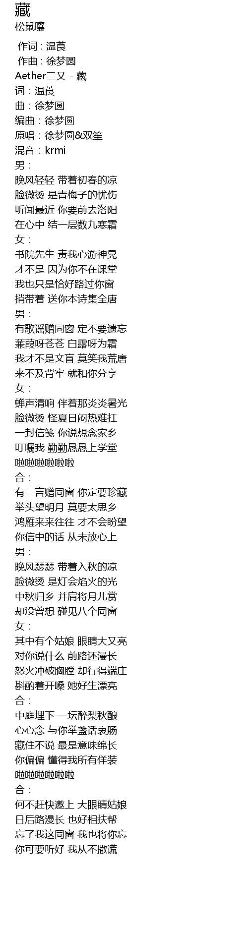 | [00:00.000] | 作曲 : 徐梦圆 |