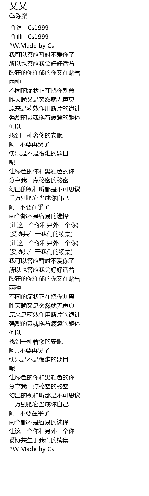 | [00:00.000] | 作词 : Cs1999 |
